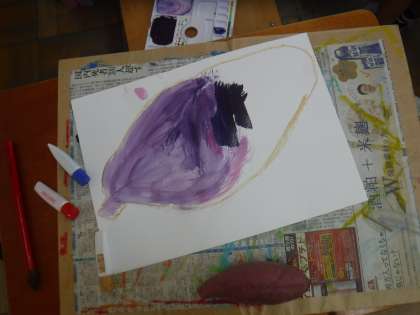収穫の喜びと,絵の具のわくわくでとっても賑やかな2年生でした。
