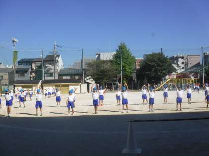 運動場で学年リハーサルをしました。