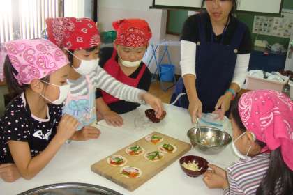 3・4校時,3組に引き続き,ピザ作りをしました。