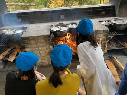 かまどの火がいこってきました。美味しいカレーライスは、後少し。楽しみです。
