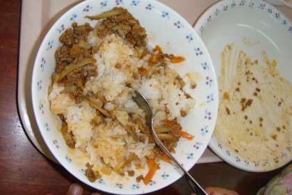 「わたしは,今日の給食の『和風ドライカレー』がおいしかったです。ごはんにまぜるとわたしの好きなカレーににている味がしました。『スープ』ももやしがたくさん入っていて,とてもおいしかったです。」・・・・・4年生の感想から