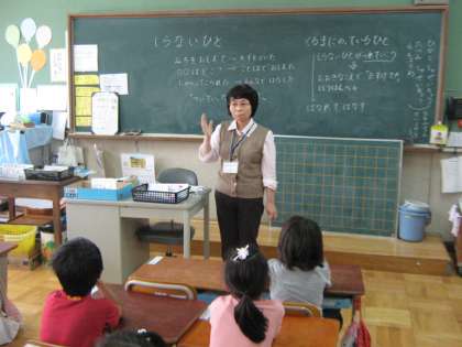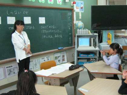 写真は1年生です。知らない人の誘いにはのらないようになるために,学習しました。知らない人と出会う具体的な場面を設定して,どのようにすればいいのか考えていきました。