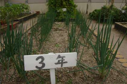 3年生のねぎと4年生のピーマンです。どちらも元気よく成長しています。