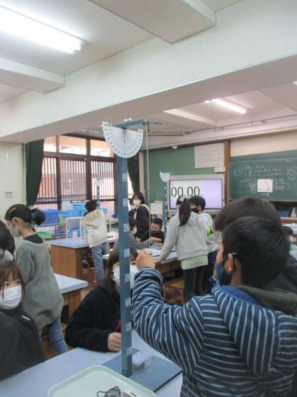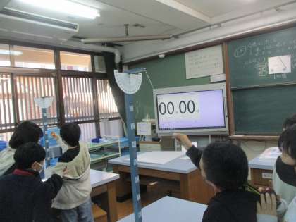 理科の授業です。「ふりこの動き」の単元に入りました。ふりこの1往復する時間は何によって決まるのかについて考えました。ふりこの長さ,おもりの重さ,ふれはば,どれによって変わるのか,実験をしながら学習を進めました。