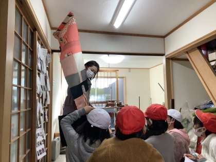 写真は絣(かすり)の工房です。職人の葛西さんにたくさんお話を伺いました。
