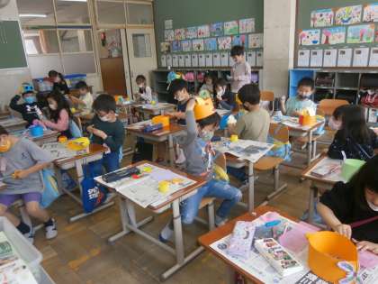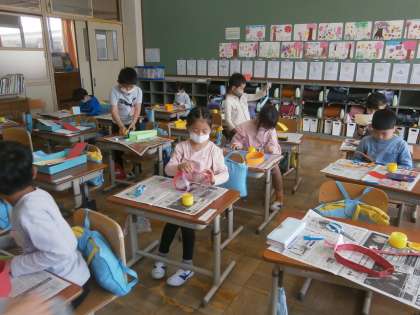 2日(月) 2年 図画工作科「わっかでへんしん」