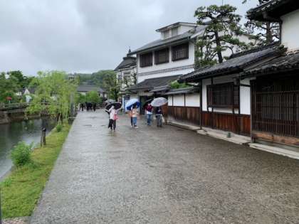 倉敷美観地区に着きました。雨は降っていますが、小雨で済んでいます。綺麗な景色とたくさんのお店に子ども達の目が輝いています。今からお土産選びです。