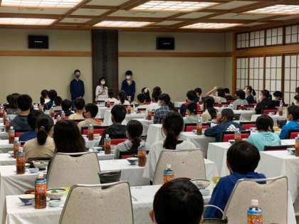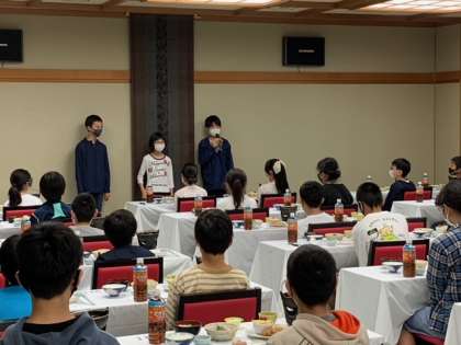 宿舎に着きました。食事会場で入館式を行いました。楽しい修学旅行をサポートしてくださる宿舎の方への感謝を忘れずに、心と体をゆっくりと休める時間になればと思います。