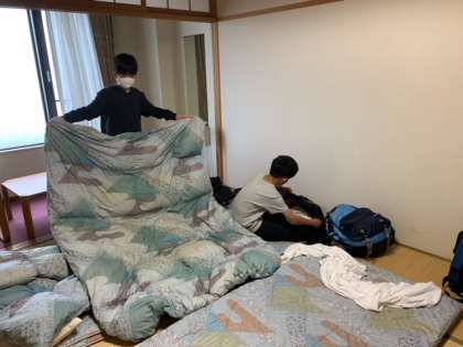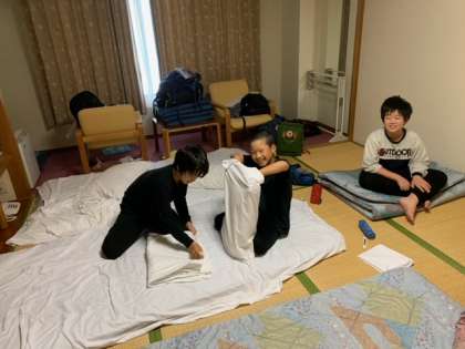 おはようございます。朝の様子です。子ども達は概ね眠れたようです。気持ちの良い挨拶をしてくれる子が多く、大変気持ちの良い朝です。友達と協力しながら部屋の片付けもテキパキと行っていました。