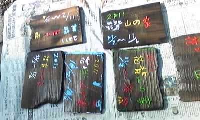 1日目の野外炊事のときに焼いておいた板に,色づけをしました。次はいよいよクッキングフェスタ2011です。