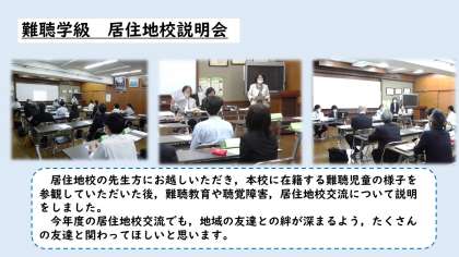 参観の後は,難聴教育についての説明会を行いました。たくさんの先生方に参加していただき,とても充実した時間となりました。ありがとうございました。
