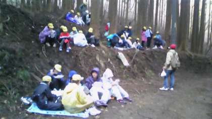 全員天狗杉に到着しました。少し雨が降っていますが。みんな元気です。途中でお弁当も食べました。