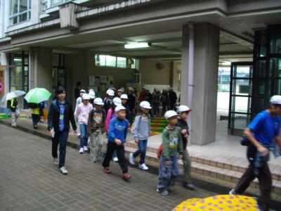 6年生が青少年科学センターで学習をするため,8時10分に学校を出発しました。