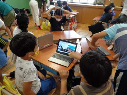 ロイロノートを使ってまとめた資料は,3年生が分かりやすいように言葉を選び,読み仮名をつける工夫がされていました。
