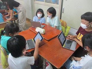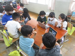 3年生とのピアサポート活動を行いました。修学旅行前に,3年生が6年生に向けてお見送りの言葉をかけてくれました。今日は,6年生が修学旅行の思い出を3年生に向けてお話しました。事前にロイロノートや画用紙にまとめたものを用いて発表しました。3年生が真剣に話を聞いたり,クイズの答えを考えてくれたりしたので,6年生も大変やりがいがあったようでした!