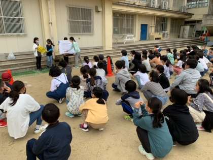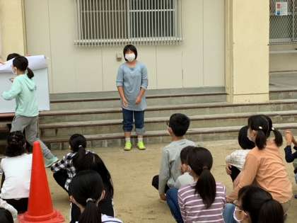 5年生宿泊活動花背山の家の活動がスタートします。5年生一人一人が、この宿泊活動での目的や目標意識しながら、出発式をすることができています。すてきな宿泊活動に向けてすてきなスタートとなりました。