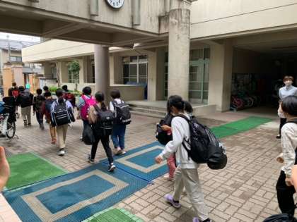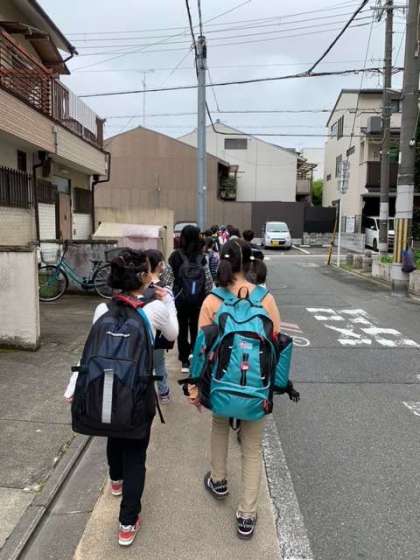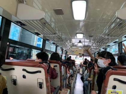 お見送りに来ていただいた方に、元気よく挨拶をして、バスに乗り込み、花背山の家に向かって行きます。この2日間で楽しく学び成長して帰ってくることを思いながら。