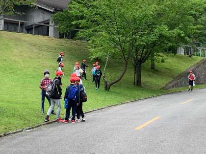 はじめの活動はネイチャービンゴです。山の家の自然の中で指定されたものを探してビンゴを作ります。もの探しをしながら自然に親しむ活動です。普段なかなか触れることのできない自然に触れることができています!曇っていますが雨は降っていません。過ごしやすい気候です。