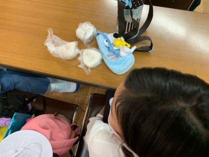 少しですがポツポツと雨が降ってきたので、室内でお昼ご飯です。お家の方に作っていただいたり、自分で作ったりしたお弁当を美味しくいただきました!
