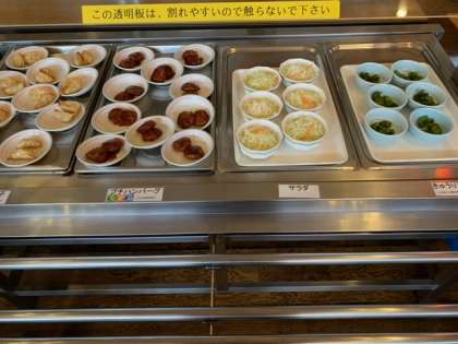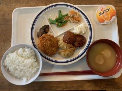 今日の夕食のメニューです。ご飯とおかずはおかわり自由です。