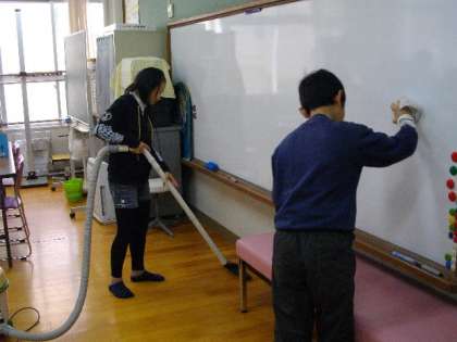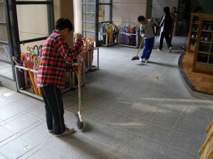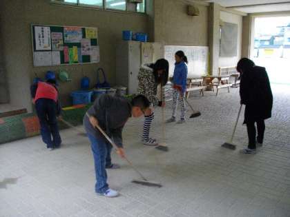 11月の生徒指導目標は「学校を美しくしましょう」です。これは,掃除の時間の様子です。次に使う人の気持ちを考えて,心をこめて掃除をしています。