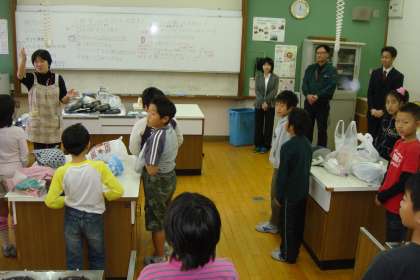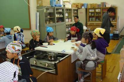の2品を作りました。どちらも子どもたちには,「とってもおいしい!!」と大好評でした。カラーピーマンは,宮崎経済連から,いただきました。お世話いただいた方々に感謝していただきました。
