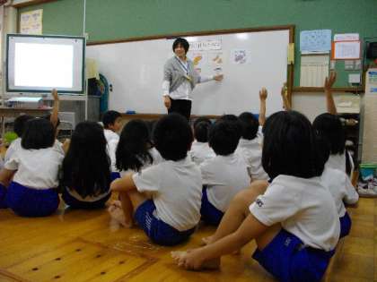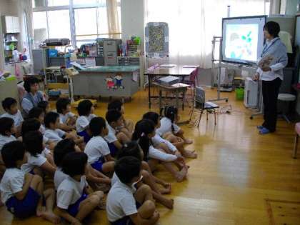 1年生の体重測定をしました。測定前に長光教諭から,「うんこをだすことは,たいせつなこと」というテーマでお話がありました。学校でトイレに行きづらいといった抵抗感をもたないように,「世界中のみんながうんこをするんだよ」ということを絵本を通して学習しました。