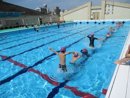 今日は水慣れが終わり,プールも通常のふかさになり,前回よりも深くなりましたが,楽しんで学習している様子が見られました。