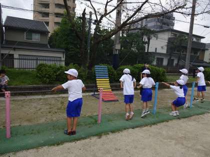 体育科では「てつぼうあそび」の学習をしています。初めに「とびあがり」「とびおり」「ふとんほし」をやりました。少しずつ鉄棒となかよしになっています。「前まわりおり」「地球まわり」「こうもりふり」といった新しい技を紹介すると,挑戦する子たちがいました。今は難しくてできない技も,あきらめることなく練習を重ね,少しずつできるようになってほしいです。