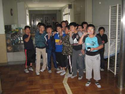 夏休み明けから給食後の歯みがきに取り組んでいます。この写真は4年生の様子です。取り組み始めたころと変わることなく,ほぼ全員が歯みがきをしています。