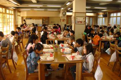 「はくさいのごま煮の味つけがおいしかったです。あげたまにのたまごがほわほわでおいしかったです。」・・・・・4年生の感想から
