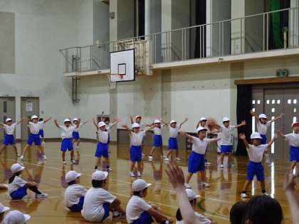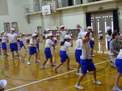 スポーツフェスティバルで踊るダンスの練習をしています。今日は,曲のサビの部分の振り付けと,各チームごとの振り付けを練習しました。音楽のリズムに合わせて楽しく体を動かしていました。とってもかわいいので,仕上がっていくのが楽しみです。