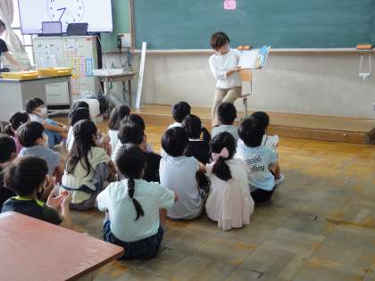 毎週楽しみにしている読み聞かせがありました。今回もお話を聞いて子どもたちは、うれしそうでした。地域の皆様、ありがとうございました。