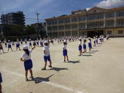 体育館の練習から運動所に場所を変えて、元気にダンスの練習をしています。ダンスの振り付けは、回を重ねるごとに上手になり、音楽に合わせて楽しそうにい踊っています。隊形移動もスムーズになってきました。暑い中ですが、こまめに水分補給をしながら頑張っています。当日まであと少し。成長した姿を見るのが楽しみです。
