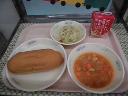 ・今日のミネストローネは、体育の後でもするする食べられて気温の暑かった今日にぴったりだなと思いました。ツナサンドは、キャベツがシャキシャキしていて、味だけでなく食感もおもしろかったです。(6年3組)