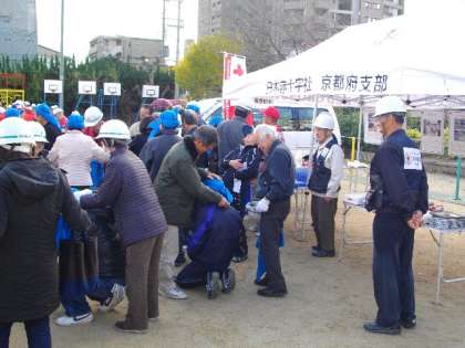応急処置の仕方を学んだり,消火体験をしたりしている様子です。