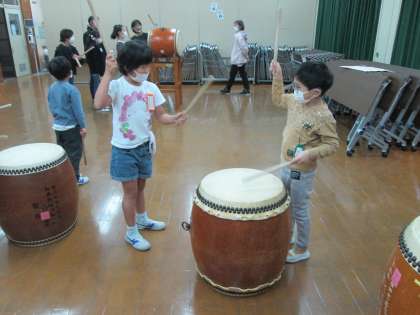 草の芽学級では、自立活動や音楽の時間に和太鼓に取り組んでいます。今年の演目は「おまつり太鼓」。12月2日の学習発表会に向けて練習を重ねています。難しいリズムもありますが、上級生が下級生に教えたり、一緒に太鼓をたたいたりして頑張る姿も見られます。初めはできない難しいリズムも、あきらめないでチャレンジし続けているとだんだん上手になってきました!5年生は、今日からやぐら太鼓をたたき始めました。