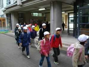 4年生が社会見学で滋賀県に向かい,9時30分に浜大津駅に到着しました。少し晴れ間が見えてきました。琵琶湖疏水沿いを歩く予定です。
