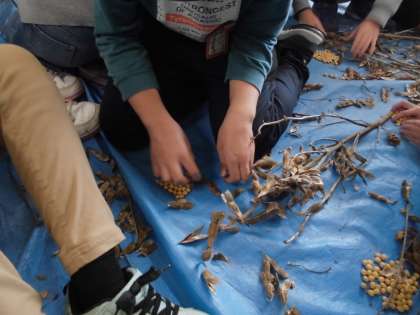 3年 総合的な学習 大豆の収穫をしました