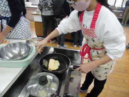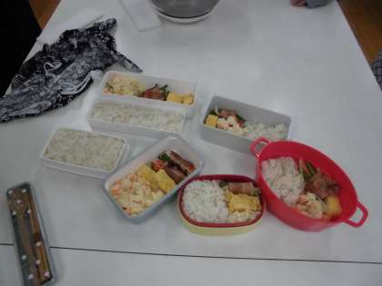 6の1で、お弁当のおかず作りの実習をしました。限られた食材を使って、自分たちで食べたいおかずをつくるために、材料はどのくらいいるのか、ガスコンロ2つでおかず3品作るために、調理工程はどうしたらいいかと、班で考えてきました。家庭科でやってきた調理の集大成にふさわしく、真剣に、でも楽しんで調理をしていました。片づけもテキパキできました。力を合わせて作った初めてのお弁当は、格別の味でした。2組、3組も今週から来週にかけて取り組んでいきます。