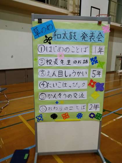 2年生が作ったプログラムと開始前の『出番を待つ太鼓』です。