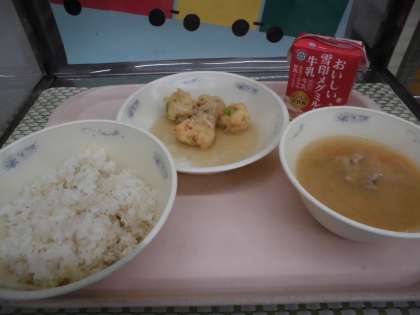 ・がんもどきのあんかけが、ふわふわしてやわらかくて、手作りの味をたのしんでたべられました。また作ってください。(1年3組)