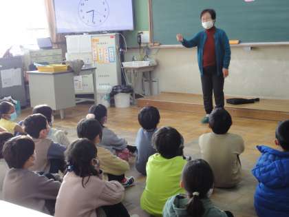 今年初めての読み聞かせでした。どのクラスも、静かにお話に聞き入っていました。地域の皆様、ありがとうございました。今年もよろしくお願いします。