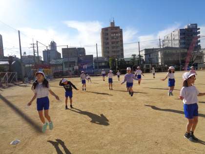 手の回し方や足のあげ方を工夫しながら跳んでいる友だちを見て、長くたくさん跳べるように頑張りました。