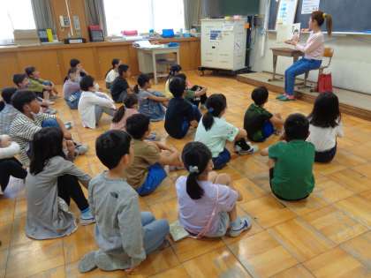 毎週水曜日に地域の方に各教室で読み聞かせをしていただいています。