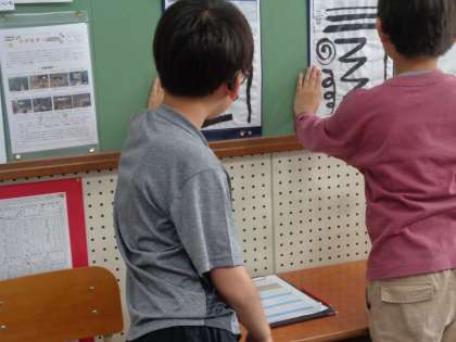 道具の名前や使い方を学習したら、楽しみにしていた「筆で書く」学習です。