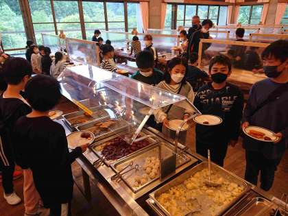 山の家の食堂でいただく食事はこれが最後になります。