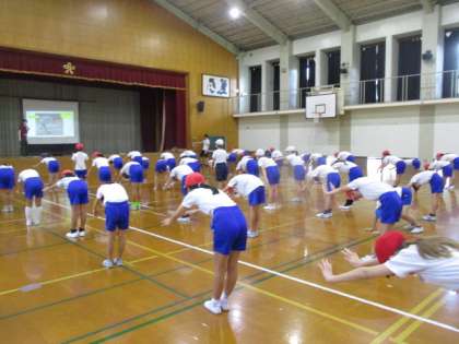 今日から体育科の学習で体ほぐしの運動として、「動物ヨガ」を始めました。今日は一つ一つのポーズを確認しました。23日のスポーツフェスティバルで披露する予定です。