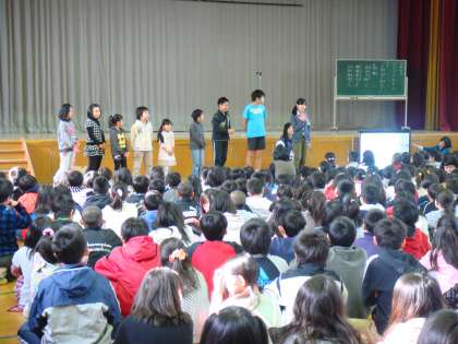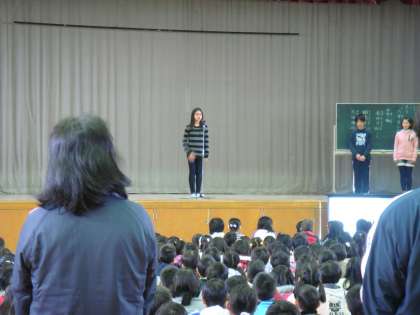 「6年生に向けて」というテーマで3人の児童がクラスを代表して発表しました。