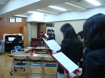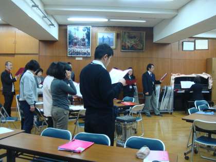 午後からの会議後,3月14日(水)に行われる「6年生を送る会」に向けて,教職員の歌の練習が始まりました。